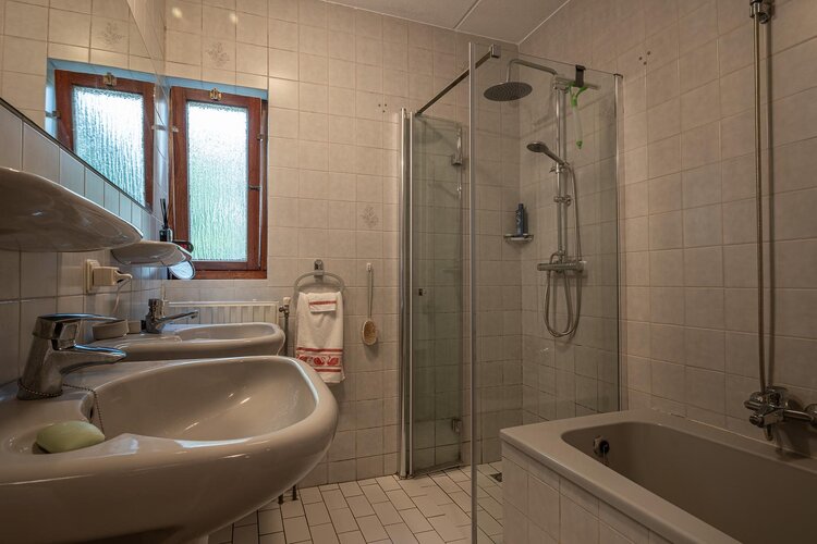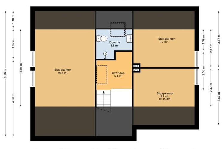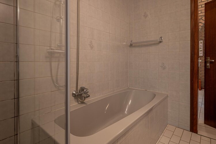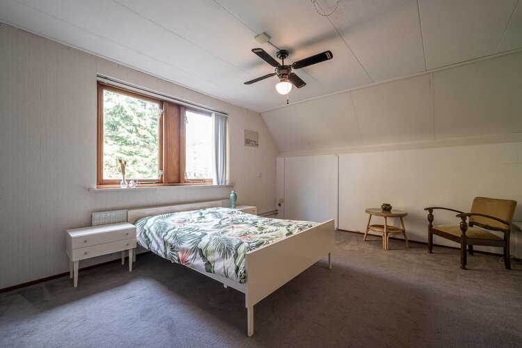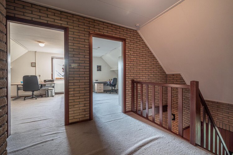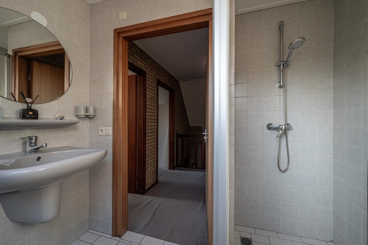 Overloop, 3 ruime slaapkamers en een tweede badkamer. Deze tweede badkamer is ingedeeld met een 2e toilet, een douche en een wastafel. Vanuit de grootste slaapkamer is er een vlizotrap naar de bergzolder.