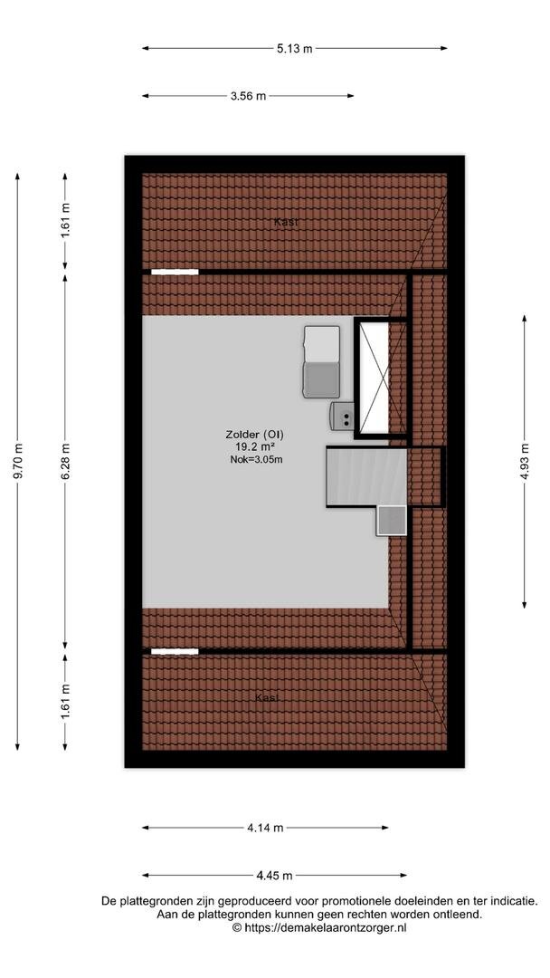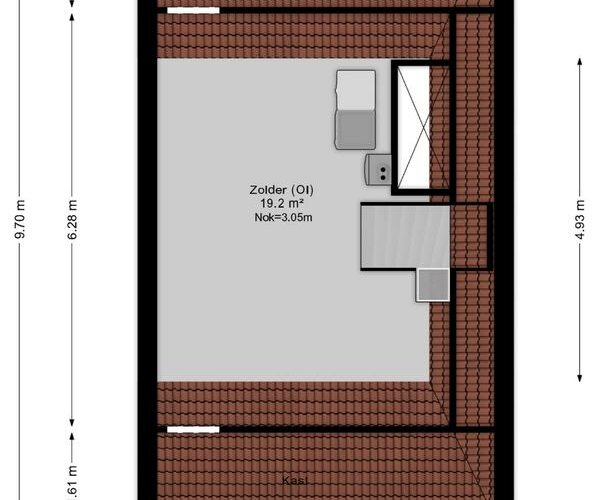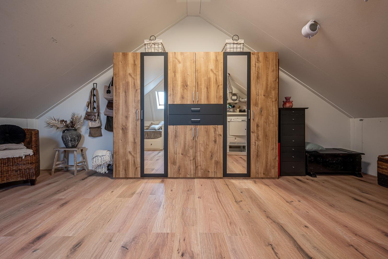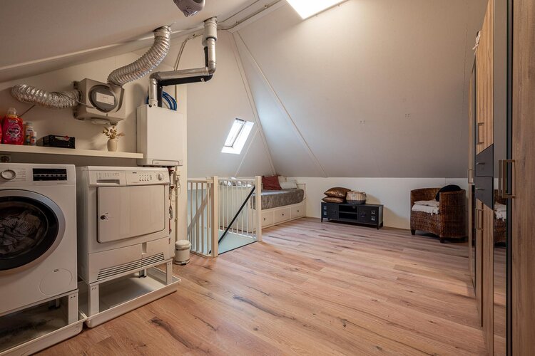 Via de vaste trap bereik je de ruime zolder met dakraam, waar eenvoudig een vierde slaapkamer gerealiseerd kan worden. Hier bevinden zich tevens de cv-ketel, witgoedaansluitingen en extra bergruimte achter de knieschotten.