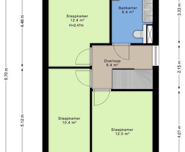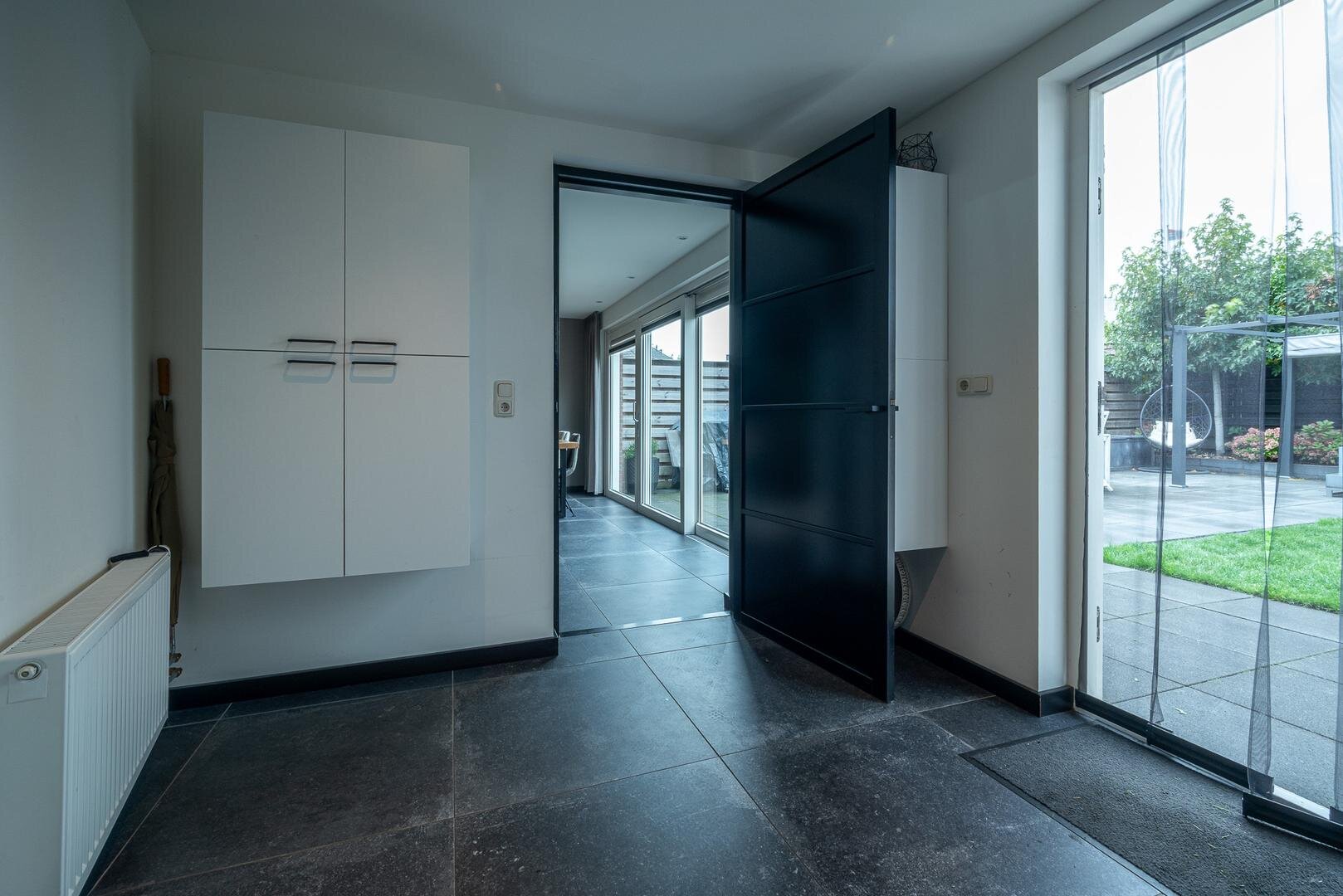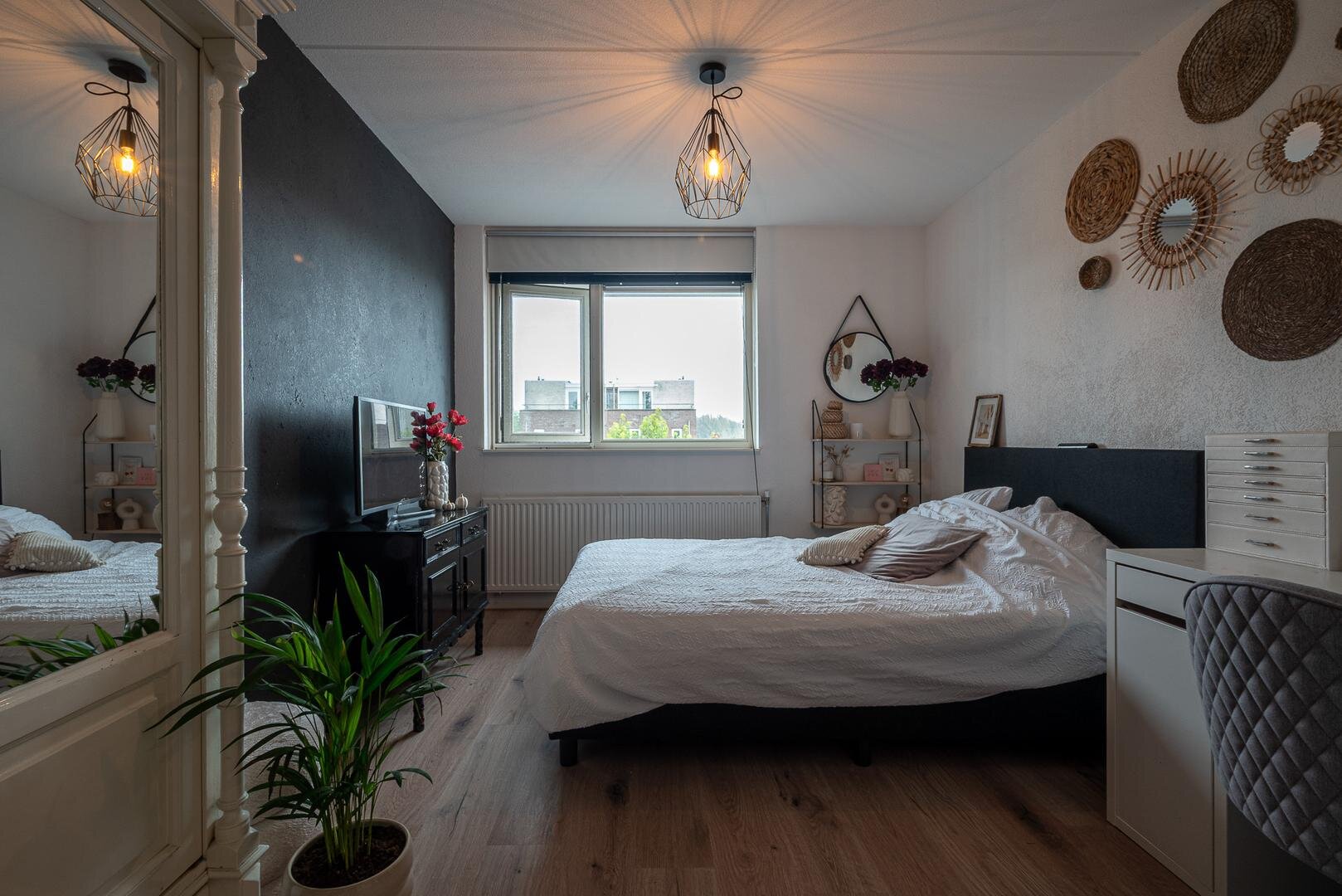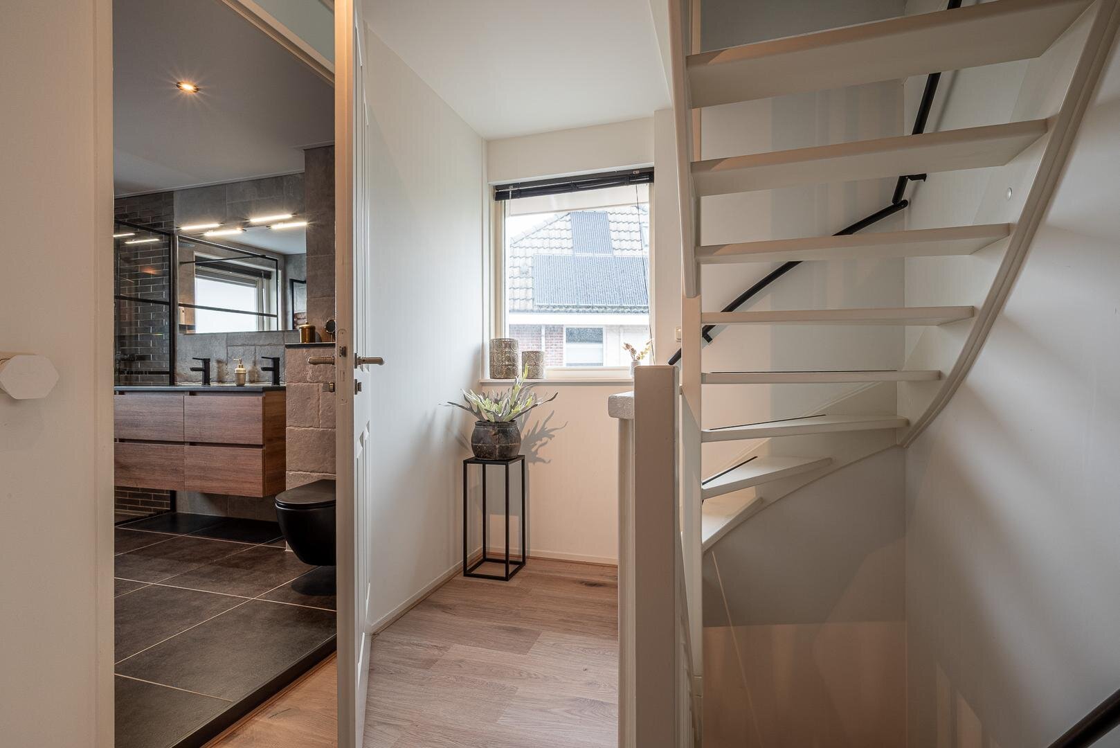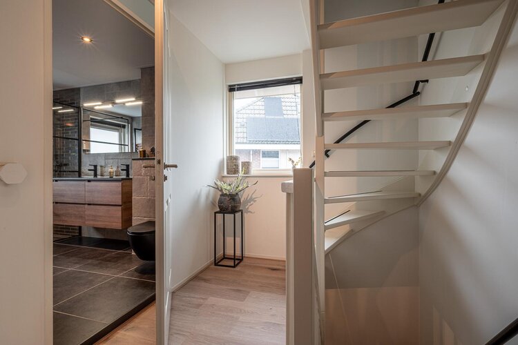 Overloop met raam voor extra lichtinval, drie slaapkamers met laminaatvloeren en een moderne badkamer met inloopdouche (regendouche), hangcloset, dubbele wastafel met meubel en handdoekradiator. De badkamer is bovendien voorzien van een spanplafond met ingebouwde, waterdichte Bluetooth-speakers, perfect om te ontspannen met jouw favoriete muziek.