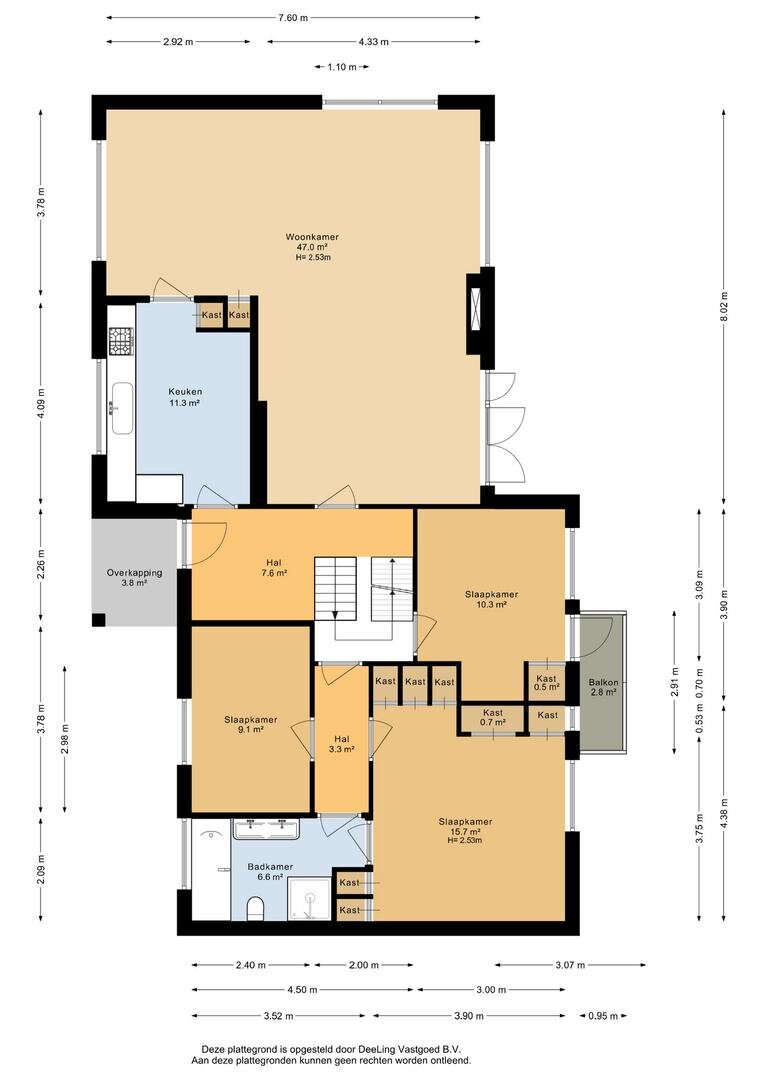 Royale hal/entree met trappenhuis die fungeert als een afscheiding tussen het woon- en slaapgedeelte. De bijzonder ruime living van 47 m² biedt een fijn uitzicht over de fraai aangelegde tuin met vijver, die tevens bereikbaar is door de dubbele openslaande deuren. Naast deze openslaande deuren zijn er ook nog prachtige grote ramen die voor veel lichtinval zorgen. De gesloten keuken heeft een nette en praktische keukenopstelling. Terug naar het trappenhuis bereik je de 2e hal die toegang geeft tot de 3 slaapkamers. Ze hebben allen praktische afmetingen: 16, 10 en 9 m². Eén van de slaapkamers is voorzien van een balkon en alle slaapkamers zijn voorzien van vaste kasten.