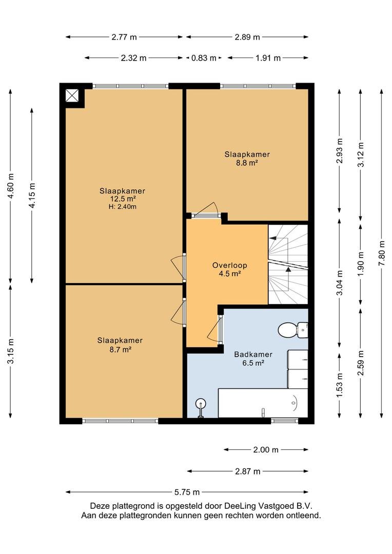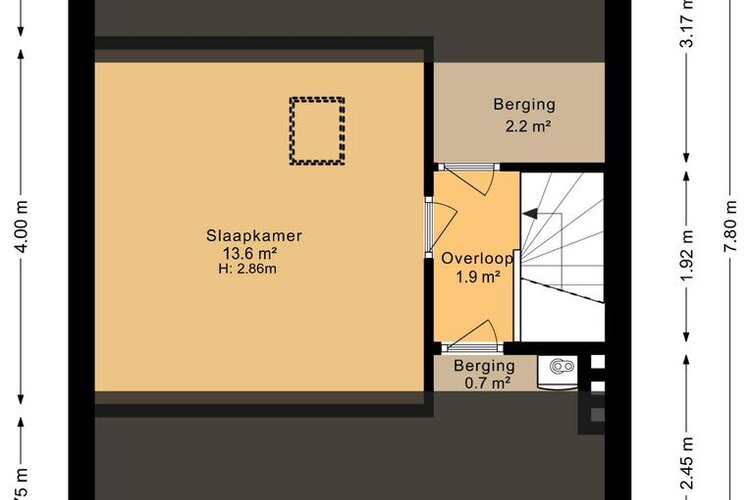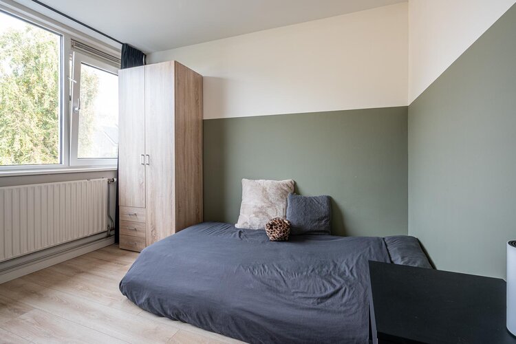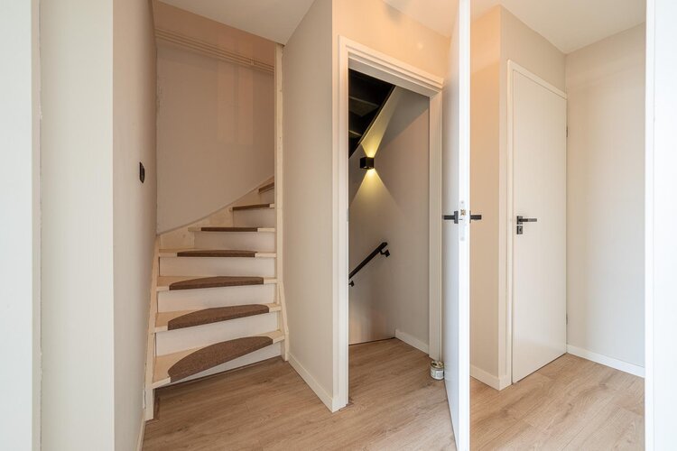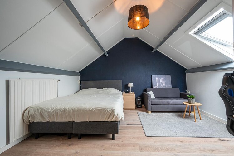 Op de tweede verdieping kom je via de overloop bij twee handige bergruimtes, ideaal voor het opbergen van seizoensspullen of voorraad. Ook is hier de cv-ketel opgesteld. De ruime slaapkamer op deze verdieping is voorzien van een dakraam, waardoor er prettig daglicht binnenvalt. Dankzij de bergruimte achter de knieschotten is ook hier slim gebruikgemaakt van de beschikbare ruimte. Perfect als slaapkamer, logeerkamer of rustige werkplek.
