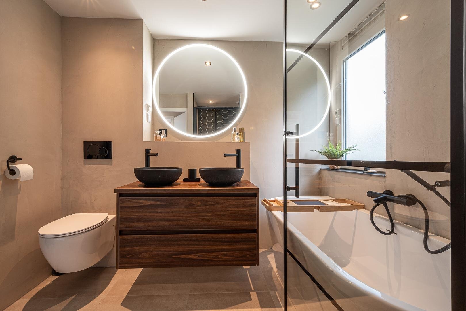 Op deze verdieping bevinden zich 3 ruime slaapkamers: allemaal voorzien van een prettige lichtinval en een fijne indeling. De badkamer is compleet en luxe uitgevoerd: je vindt hier een ruime inloopdouche met dubbele douchekop, een comfortabel ligbad, een tweede toilet en een stijlvol dubbel wastafelmeubel. Alles is tot in de puntjes afgewerkt en ingericht met oog voor comfort en gebruiksgemak.