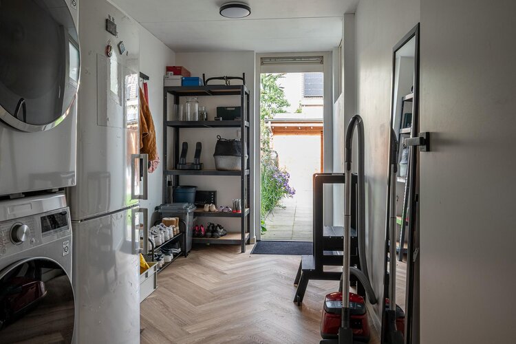 Grenzend aan de keuken bevindt zich een royale bijkeuken, ideaal voor extra bergruimte én het plaatsen van wasmachine en droger.