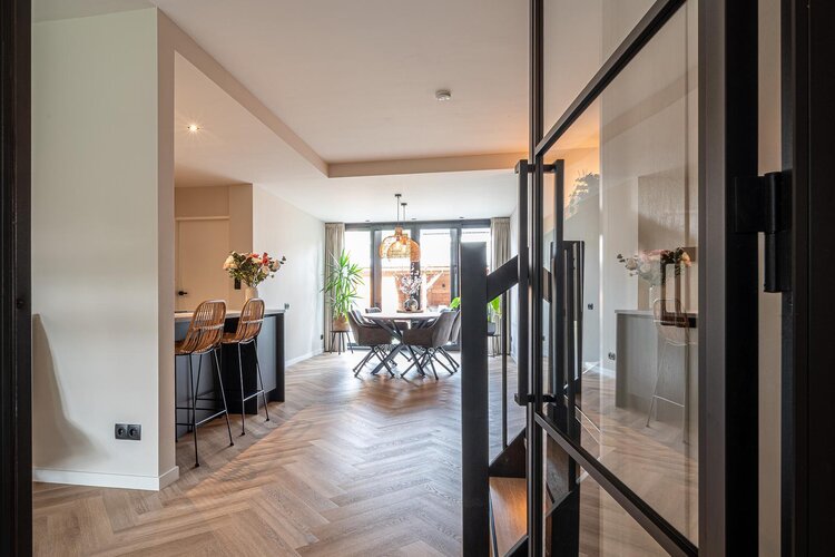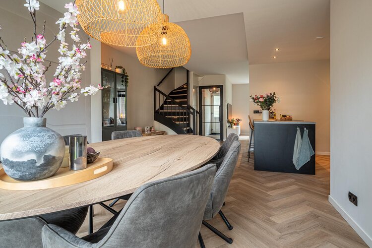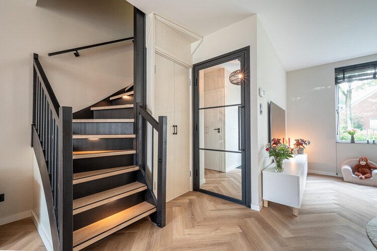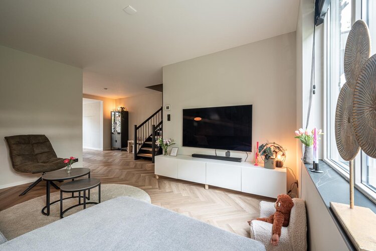Bij binnenkomst valt meteen op hoe licht en sfeervol de woning is. De straatgerichte woonkamer biedt een levendig uitzicht op het groen, terwijl de tuingerichte woonkeuken uitkijkt op de fraai aangelegde achtertuin. De moderne keuken vormt het hart van het huis en biedt volop ruimte voor het bereiden van een heerlijke maaltijd, terwijl je uitkijkt op het speelhoekje en de eetkamer.